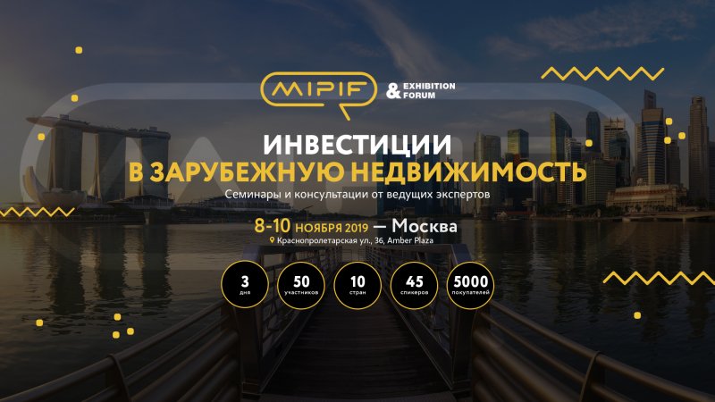 Москва, 2019, 8-10 ноября - узнайте обо всех ключевых тенденциях мирового рынка недвижимости на инвестиционном выставочном форуме MIPIF.